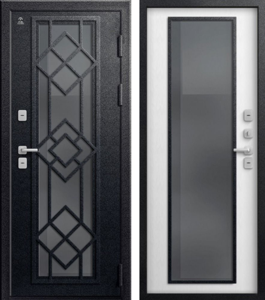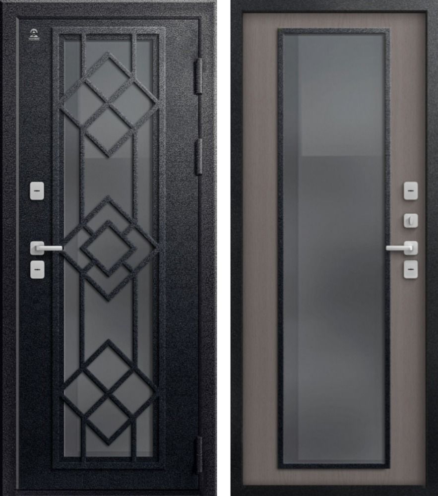 Внешнее покрытие: металл черный муар + двухкамерный стеклопакет (цвет стекла Grey)