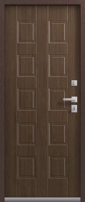 Декоративная накладка с автоматической шторкой, броненакладка на цилиндр, цилиндр — ключ/вертушка**, ночная задвижка, ручка раздельная, 3 петли