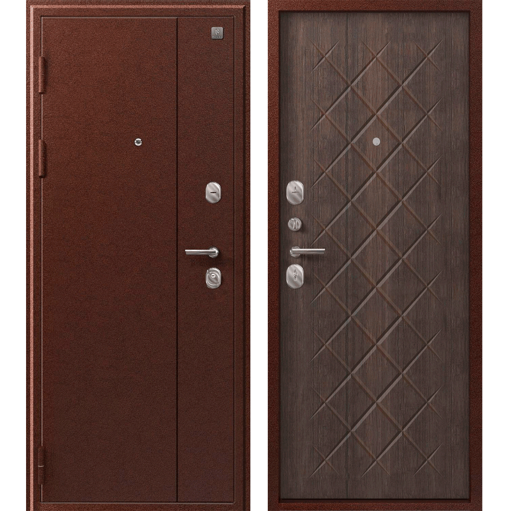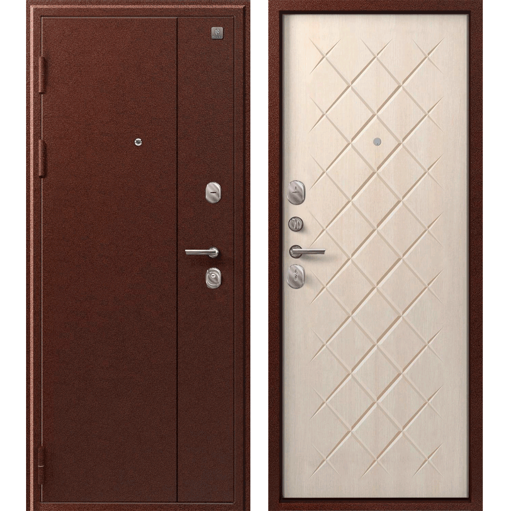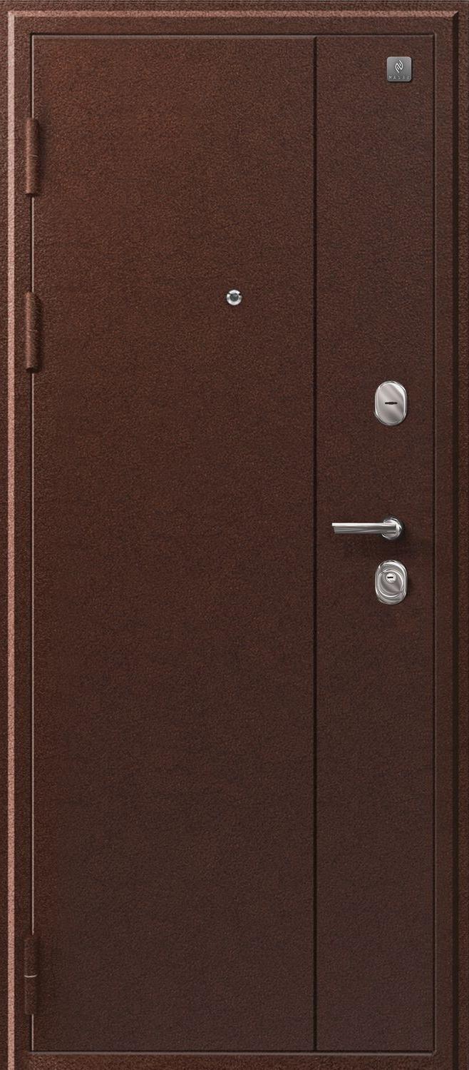 Броненакладка на цилиндр, цилиндр — ключ/вертушка, ночная задвижка, ручка раздельная, 3 петли, глазок, Противосъемные штыри