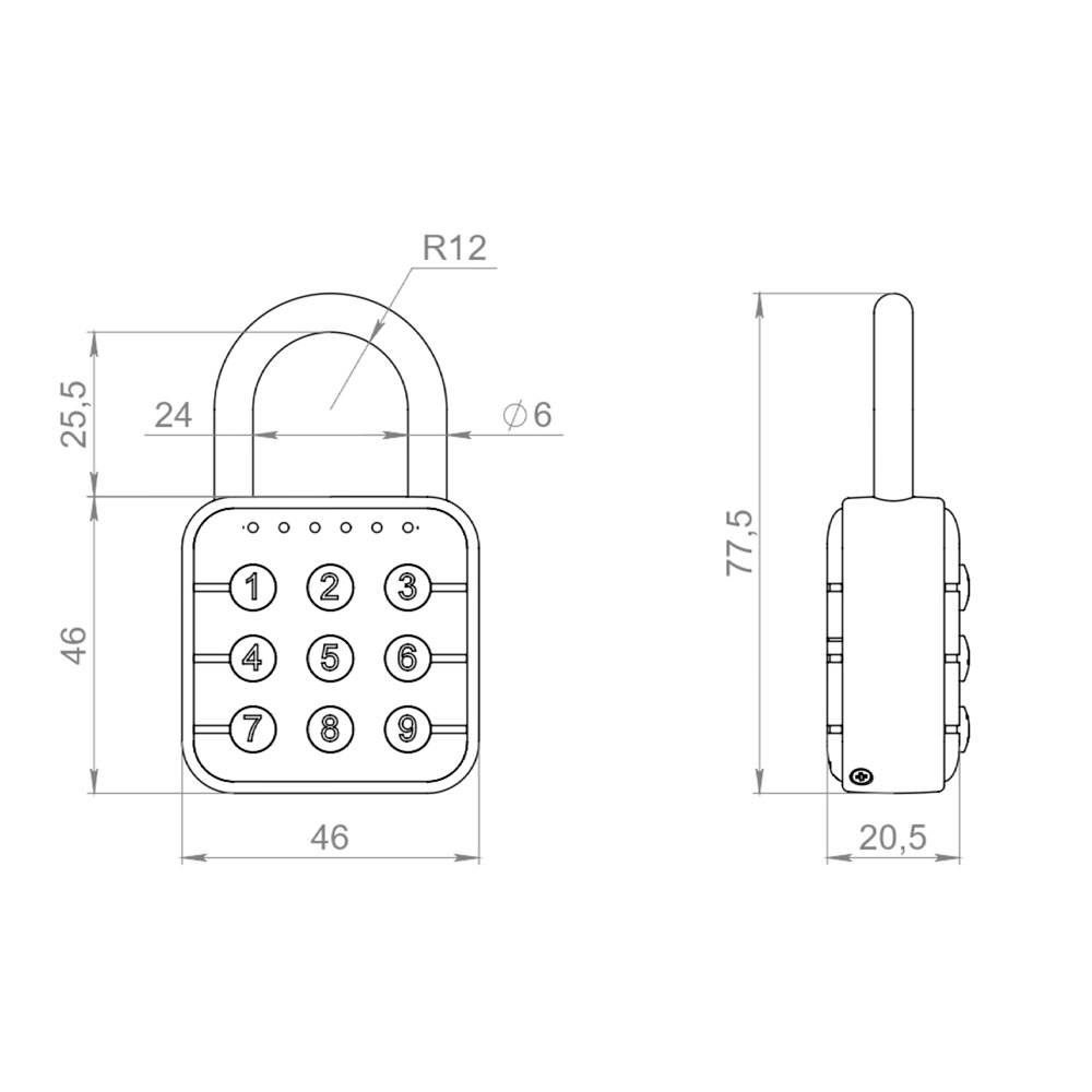 Современный умный кодовой навесной замок PL-SMART-CODE — надёжное и удобное решение для защиты имущества без использования традиционных ключей. На лицевой панели расположена влагозащитная цифровая клавиатура с механическими кнопками и световой индикацией успешного ввода кода. Благодаря всепогодному исполнению и влагозащищенному корпусу IP67 можно использовать как велосипедный замок. Работает на 2 литиевых дисковых батареях CR2032, время работы на батареи в режиме ожидания 9 месяцев.