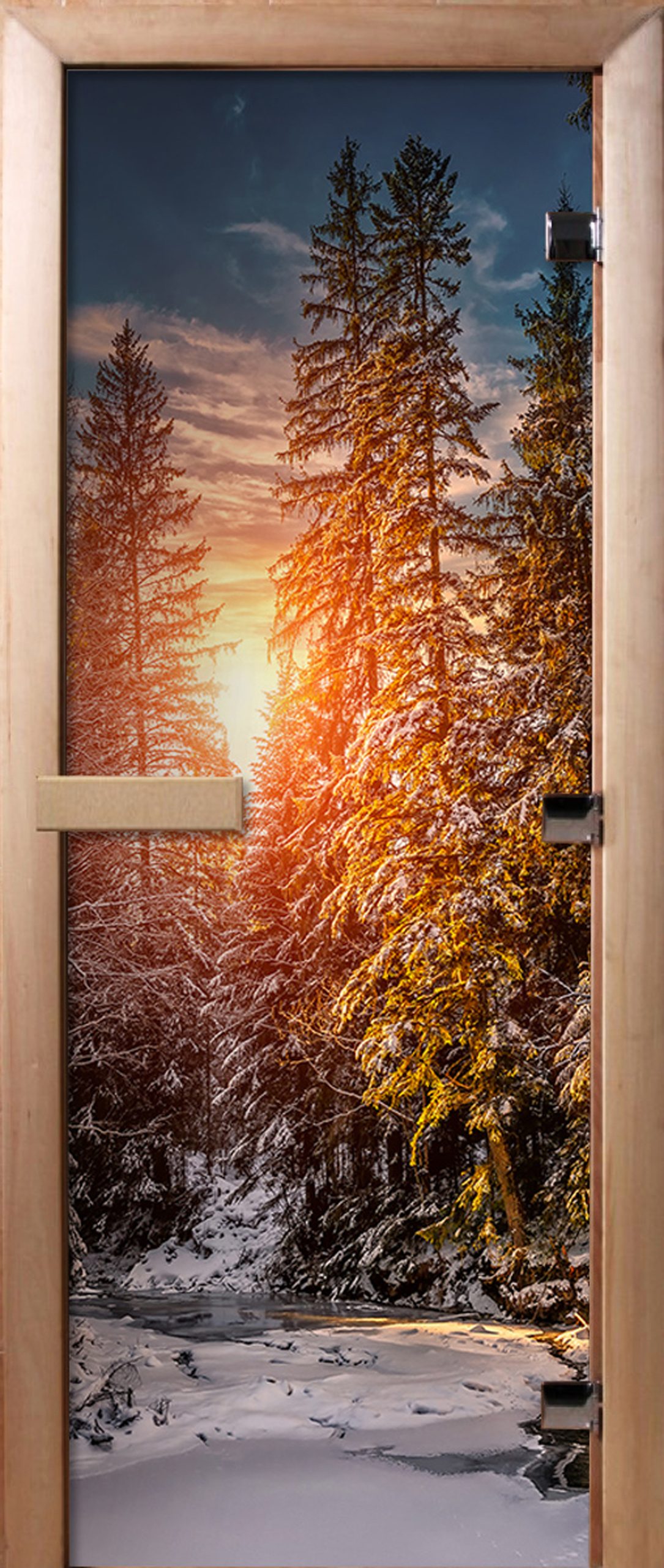 Дверь для бани и сауны с термически закалённым стеклом с фотопечатью