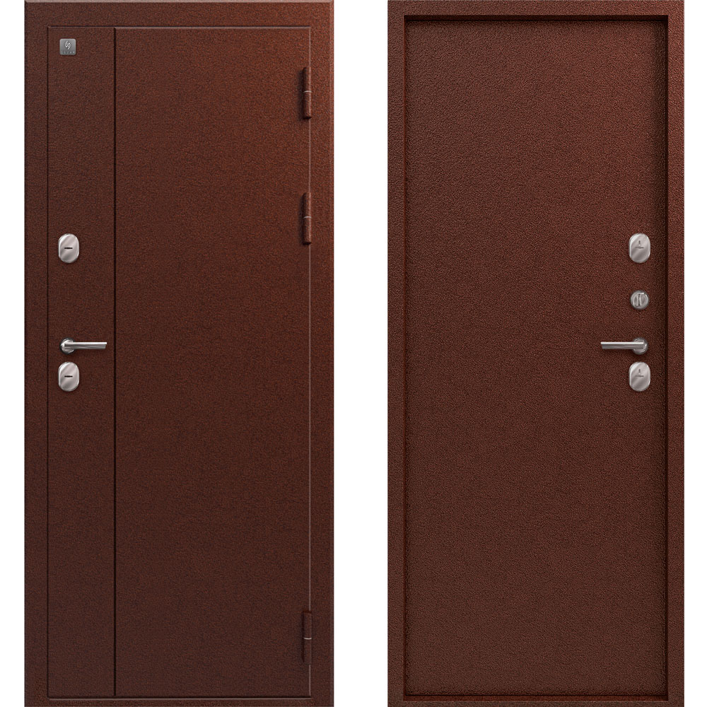 Эксцентрик (регулятор притвора), Накладка с автоматическими шторками под сувальдный ключ, ночная задвижка, ручка раздельная, 3 петли, нержавеющий порог, броненакладка на цилиндр, противосъемные штыри