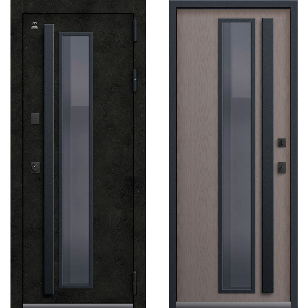 Внешнее исполнение: Металл + МДФ 10 мм Бетон тёмный + Двухкамерный стеклопакет (цвет стекла Grey)