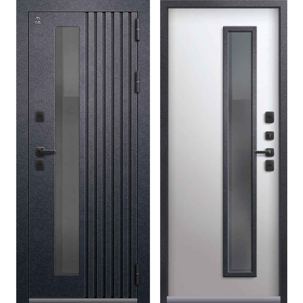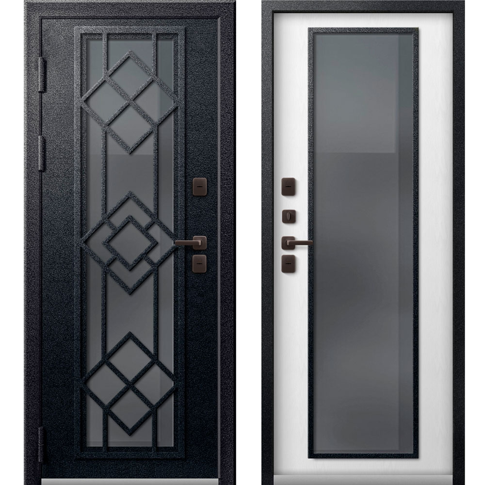 Внешнее покрытие: металл черный муар + двухкамерный стеклопакет (цвет стекла Grey)