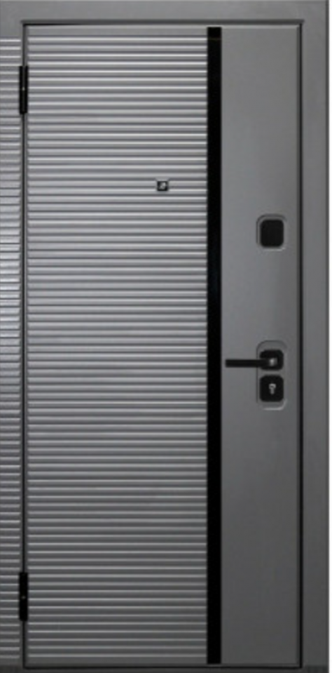Внешнее покрытие: фрезерованная МДФ-панель 10 мм, цвет – «Графит», вставка — черное стекло
